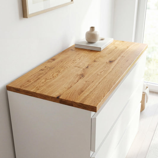 Deckplatte aus Wildeiche Massivholz passend für IKEA Kallax, Besta, Hemnes, Malm, Kullen, Trones, Abdeckplatte, Naturgeölt oder Unbehandelt